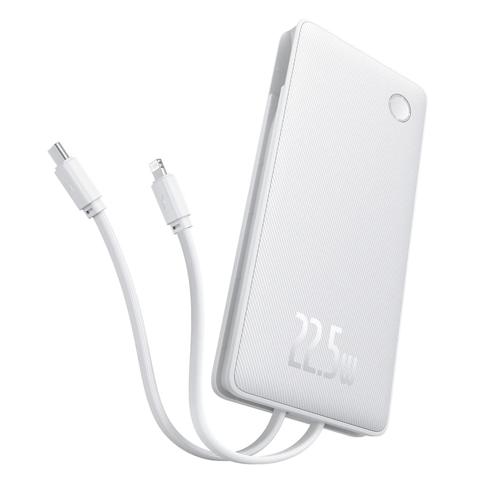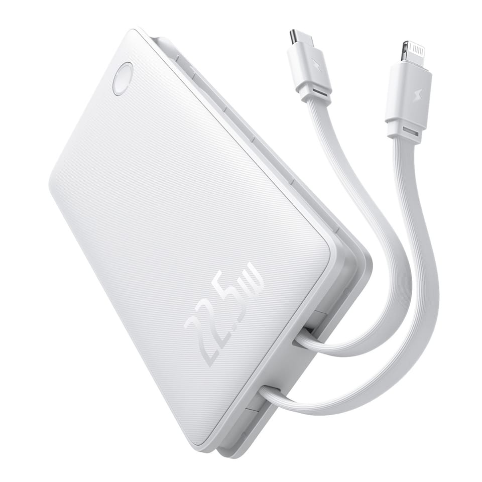 - - Powerbank 10000mAh 22.5W Airpow Lite z wbudowanymi kablami USB-C iPhone Lightning - biały