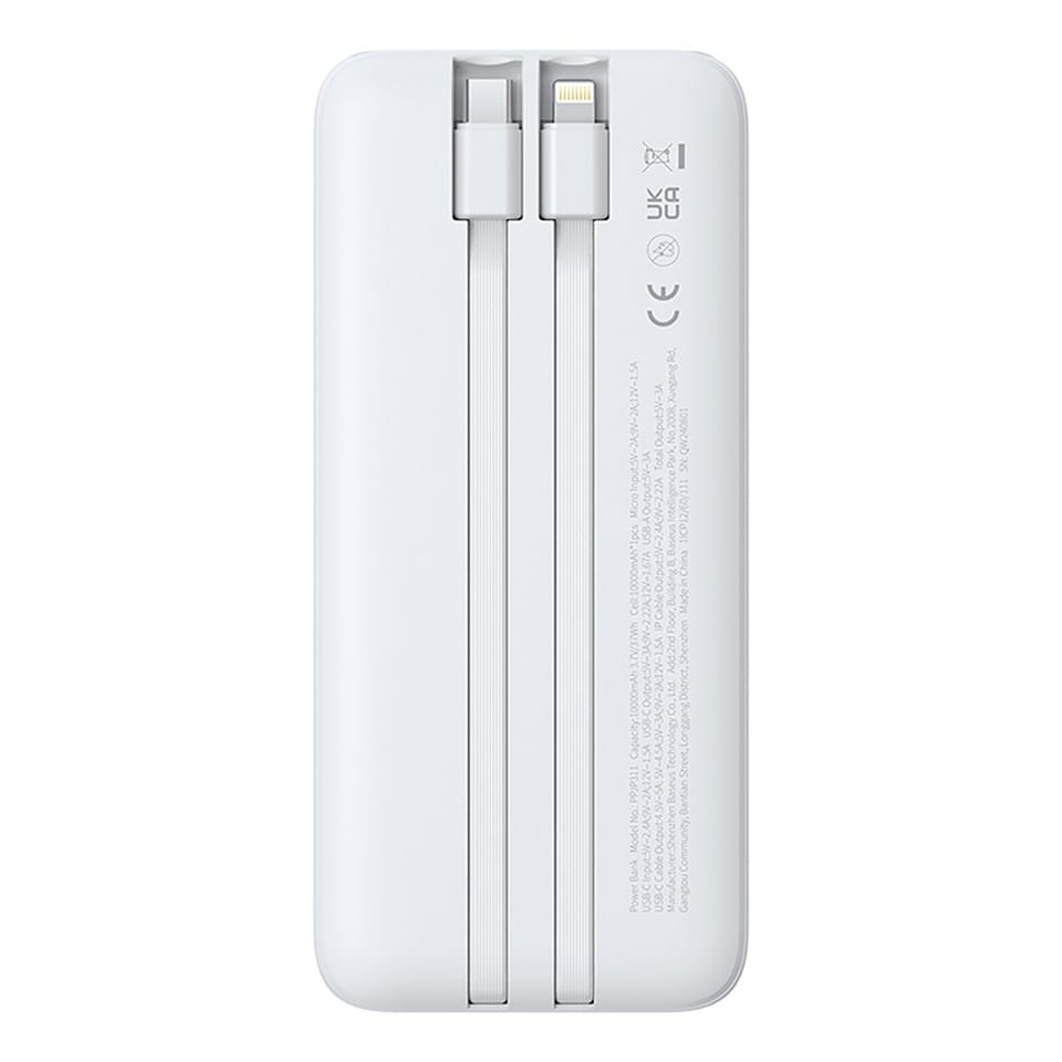 - - Dwa wbudowane kable: powerbank posiada wbudowany przewód USB-C oraz przewód Lightning, dzięki czemu jest gotowy do użycia bez dodatkowych akcesoriów.