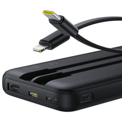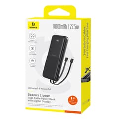 Kod produktu: 1031621Baseus Lipow 10000mAh to kompaktowy powerbank z podwójnym wbudowanym kablem USB-C i Lightning, idealny do codziennego ładowania smartfonów i akcesoriów. Maksymalna moc 22.5W zapewnia szybkie uzupełnianie energii kompatybilnych urządzeń, a czytelny wyświetlacz LED pozwala w każdej chwili sprawdzić poziom naładowania. Obecność czterech portów wyjściowych zwiększa wygodę użytkowania, umożliwiając ładowanie kilku urządzeń jednocześnie. W zestawie znajduje się również dodatkowy kabel Baseus Simple USB-A - USB-C 3A o długości 0,2m. Czarny kolor i smukła konstrukcja sprawiają, że urządzenie prezentuje się nowocześnie i elegancko.Cechy produktu: