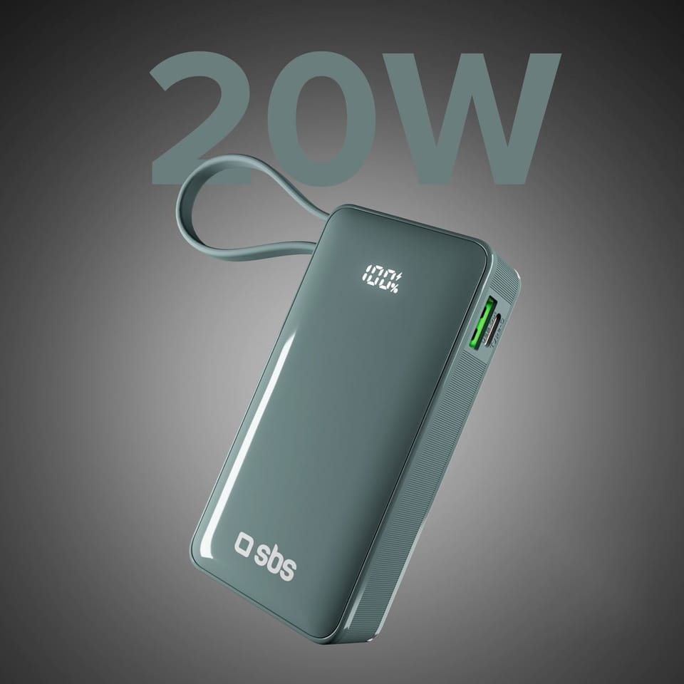 Kod produktu: 1031156Powerbank SBS 10000 mAh 20W w kolorze szarym to niezawodny towarzysz w podróży, oferujący wygodę i funkcjonalność na najwyższym poziomie. Dzięki kompaktowym rozmiarom, możesz zabrać go ze sobą wszędzie, nawet na pokład samolotu! Dwa porty ładujące pozwalają na jednoczesne ładowanie dwóch urządzeń, a wbudowany kabel USB-C sprawia, że szybko naładujesz swój smartfon bez potrzeby noszenia dodatkowych kabli. Duży wyświetlacz LCD umożliwia szybkie sprawdzenie poziomu naładowania baterii, a pojemność 10000 mAh pozwala na wielokrotne naładowanie urządzeń. Dodatkowo, minimalistyczny design z gumowaną powierzchnią sprawia, że powerbank wygląda elegancko i jest przyjemny w dotyku. To must-have dla osób szukających niezawodnego źródła energii w każdej sytuacji.Cechy produktu: