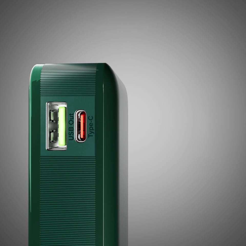 - - Ładowanie dwóch urządzeń jednocześnie - Powerbank umożliwia ładowanie dwóch urządzeń naraz, dzięki dwóm portom (USB-A i USB-C), co jest wyjątkowo wygodne w sytuacjach, kiedy masz więcej niż jedno urządzenie do naładowania.