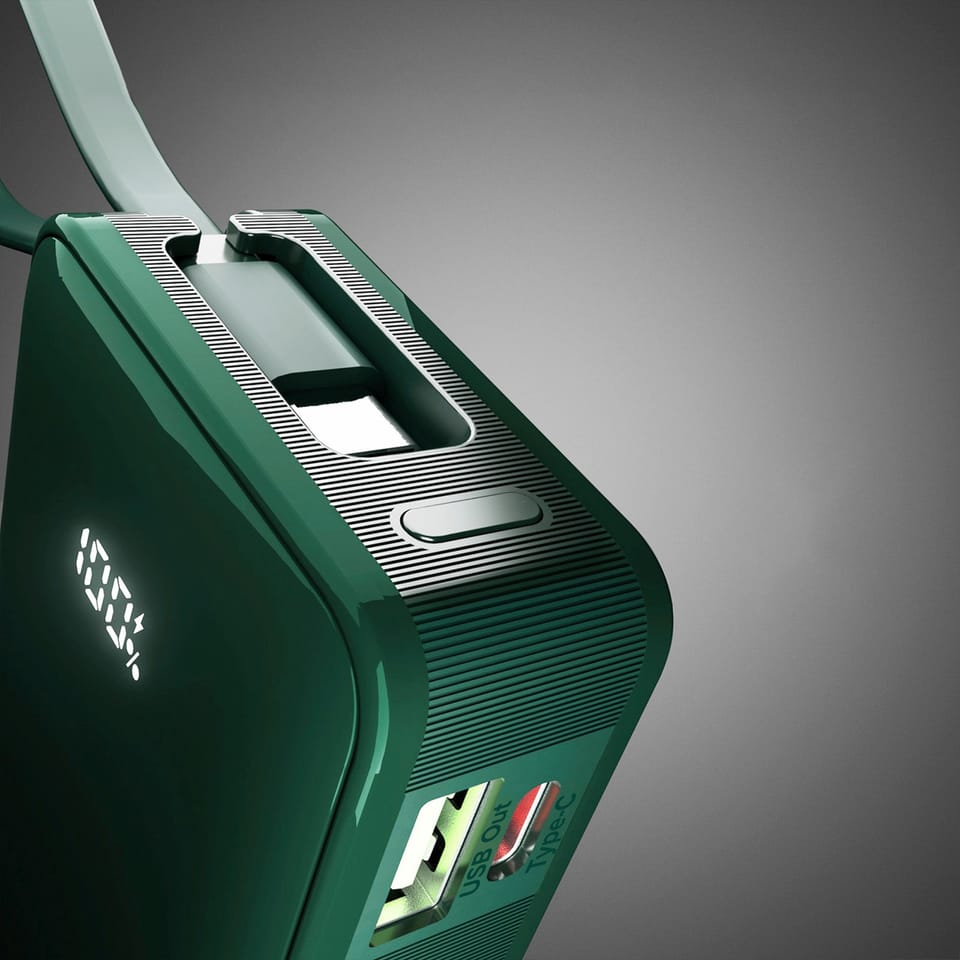 - - Wbudowany kabel USB-C - Już nie musisz zabierać dodatkowych kabli! Wbudowany kabel USB-C pozwala na szybkie ładowanie Twojego smartfona - zawsze masz go pod ręką.