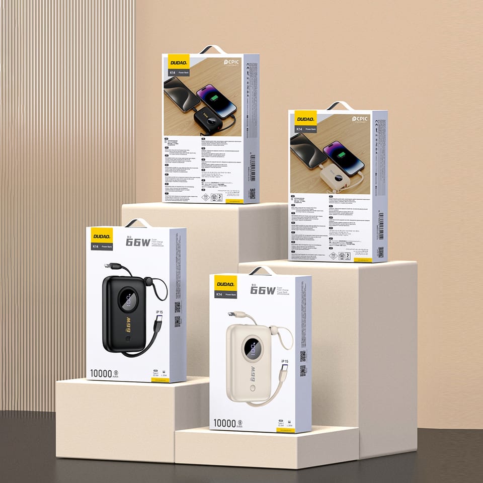 Kod produktu: 1025157Powerbank Dudao K14 jest świetnym wyborem na podróż - również samolotem. Pozwoli na jednoczesne ładowanie aż czterech urządzeń, dzięki czemu nigdy nie zabraknie Ci dostępu do swoich ulubionych aplikacji czy kontaktów. Jego kompaktowe rozmiary sprawiają, że łatwo zmieści się w każdej torbie czy plecaku. Dodatkowo wbudowane kable USB-C i Lightning eliminują potrzebę noszenia dodatkowych akcesoriów. Wbudowany wyświetlacz pozwala na bieżąco monitorować stan naładowania, a zaawansowane technologie ładowania szybko przywracają energię Twoim urządzeniom.Naładuje aż 4 urządzenia jednocześniePowerbank Dudao K14 jest nie tylko wydajny, ale także niezwykle funkcjonalny: może ładować aż cztery urządzenia w tym samym czasie! Dzięki złączom USB-A i USB-C oraz wbudowanym kablam USB-C i Lightning jest kompatybilny z większością nowoczesnych urządzeń. Taka funkcjonalność czyni go idealnym wyborem dla rodzin lub grupy przyjaciół potrzebujących wspólnego źródła zasilania podczas podróży.10000 mAh pojemności dla Twojej wygodyPojemność 10000 mAh pozwala na kilkukrotne naładowanie telefonu czy innego urządzenia mobilnego, nawet gdy nie masz dostępu do gniazdka elektrycznego. Niezależnie od tego, czy jesteś na wyjeździe, czy uczestniczysz w intensywnych sesjach pracy, ten powerbank stanowi solidne zaplecze energetyczne.Szybkie ładowanie w każdych warunkachZastosowanie technologii Quick Charge 3.0 oraz Power Delivery to gwarancja, że Twoje urządzenia zostaną naładowane w krótkim czasie. Moc ładowania sięgająca 22.5 W pozwala na szybkie odzyskiwanie energii przez smartfony, tablety czy inne urządzenia kompatybilne z szybkim ładowaniem.Efektywne zarządzanie energiąWbudowany wyświetlacz LED nie tylko dodaje nowoczesności jego wyglądowi, ale przede wszystkim informuje o dokładnej ilości pozostałej energii. Taka funkcja pozwala na lepsze planowanie i zarządzanie dostępnymi zasobami energii, co jest kluczowe np. w długich podróżach.Mobilność bez ograniczeńPowerbank Dudao K14 z łatwością zmieści się w każdej torbie czy plecaku. Jego niewielkie rozmiary i lekka konstrukcja czynią go idealnym urządzeniem dla osób ciągle w ruchu. Dzięki wygodnemu uchwytowi na nadgarstek, który także pełni funkcję kabla, powerbank jest zawsze pod ręką. Możesz go używać w każdej sytuacji - czy to w podróży, na wyjeździe służbowym czy podczas codziennych dojazdów.Najważniejsze cechy: