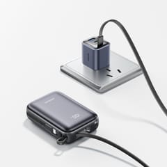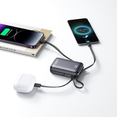 Kod produktu: 1033531Joyroom JR-PBF29 to pojemny powerbank 20000 mAh z szybkim ładowaniem do 22,5 W i wbudowanymi dwoma kablami. Kompaktowa konstrukcja mieści dużą baterię, która pozwala wielokrotnie naładować smartfon bez dostępu do gniazdka. Port USB-C obsługuje zarówno wejście, jak i wyjście, a cyfrowy wyświetlacz pokazuje poziom energii w czasie rzeczywistym. To praktyczne rozwiązanie dla użytkowników urządzeń z USB-C oraz iPhone Lightning.Cechy produktu: