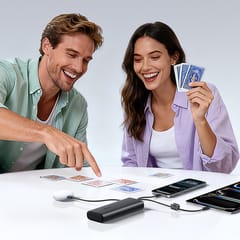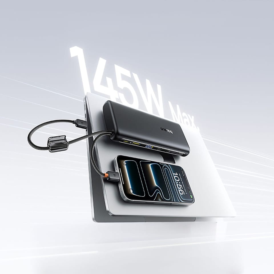 Kod produktu: 1033451Baseus EnerFill FC41 to wydajny powerbank o pojemności 25000 mAh i maksymalnej mocy 145 W, zaprojektowany z myślą o laptopach, smartfonach i innych wymagających urządzeniach. Wyposażony w dwa wbudowane, plecione kable USB-C oraz dodatkowe porty, umożliwia jednoczesne ładowanie nawet czterech urządzeń. Cyfrowy wyświetlacz pokazuje poziom naładowania i status pracy w czasie rzeczywistym, a technologia BPS 2.0 inteligentnie rozdziela moc między podłączone sprzęty.Cechy produktu: