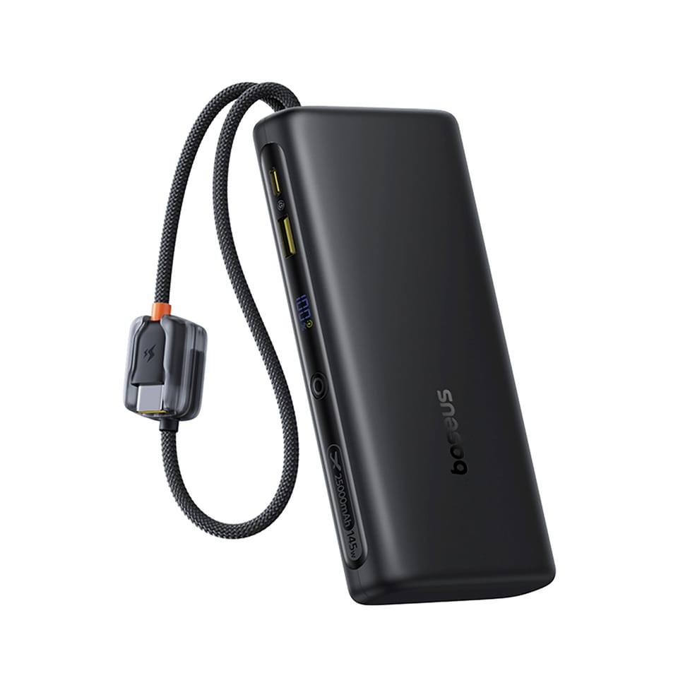 - - Powerbank 25000mAh 145W z wyświetlaczem wbudowanymi kablami USB-C - czarny.