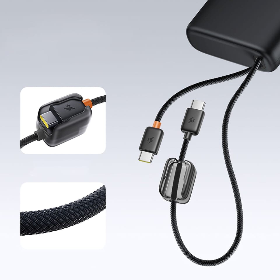 - - Dwa wbudowane kable USB-C: plecione przewody zawsze pod ręką.