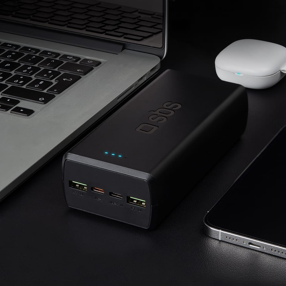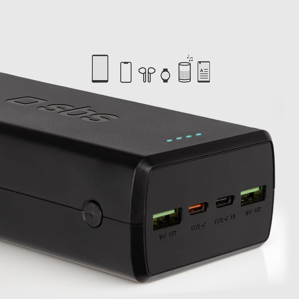 Kod produktu: 1027878Powerbank SBS TTBB30000PD20K to niezastąpiony towarzysz w każdej sytuacji, niezależnie od tego, czy podróżujesz, biwakujesz, czy potrzebujesz niezawodnego źródła energii w codziennym życiu. Dzięki imponującej pojemności 30 000 mAh możesz naładować swój smartfon nawet 12 razy! Wyposażony w 4 porty, umożliwia jednoczesne ładowanie aż 4 urządzeń, takich jak telefony, tablety czy słuchawki bezprzewodowe. Technologia Power Delivery (PD) i Adaptive Fast Charge (AFC) gwarantują ultraszybkie i bezpieczne ładowanie. Kompaktowy design pozwala zabrać go ze sobą wszędzie, nawet na pokład samolotu. Gotowy do użycia od razu po zakupie, ten powerbank to doskonały wybór dla wymagających użytkowników.Imponująca pojemność 30 000 mAhPowerbank SBS TTBB30000PD20K oferuje wyjątkowo dużą pojemność, która pozwala na wielokrotne ładowanie urządzeń. Idealny dla osób, które potrzebują niezawodnego źródła energii w podróży lub w sytuacjach awaryjnych.Jednoczesne ładowanie 4 urządzeńWyposażony w 4 porty, powerbank pozwala ładować wiele urządzeń jednocześnie, co czyni go idealnym rozwiązaniem dla rodzin, grup przyjaciół lub użytkowników posiadających wiele gadżetów.Szybkie i bezpieczne ładowanieDzięki technologii Power Delivery (PD) i Adaptive Fast Charge (AFC) możesz szybko i bezpiecznie naładować swoje urządzenia bez ryzyka przegrzania czy przepięcia.Kompaktowy design i mobilnośćPowerbank waży zaledwie 400 g i jest wystarczająco kompaktowy, aby zmieścić się w bagażu podręcznym. Możesz go zabrać wszędzie, nawet na pokład samolotu.Gotowość do działania od razu po zakupiePowerbank jest wstępnie naładowany, co oznacza, że możesz z niego korzystać natychmiast po wyjęciu z opakowania. To idealne rozwiązanie dla osób potrzebujących energii w każdej chwili.Najważniejsze cechy: