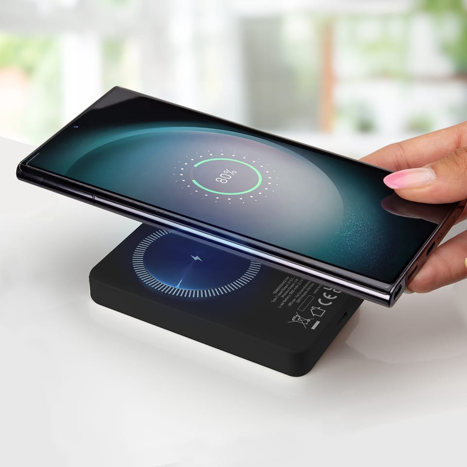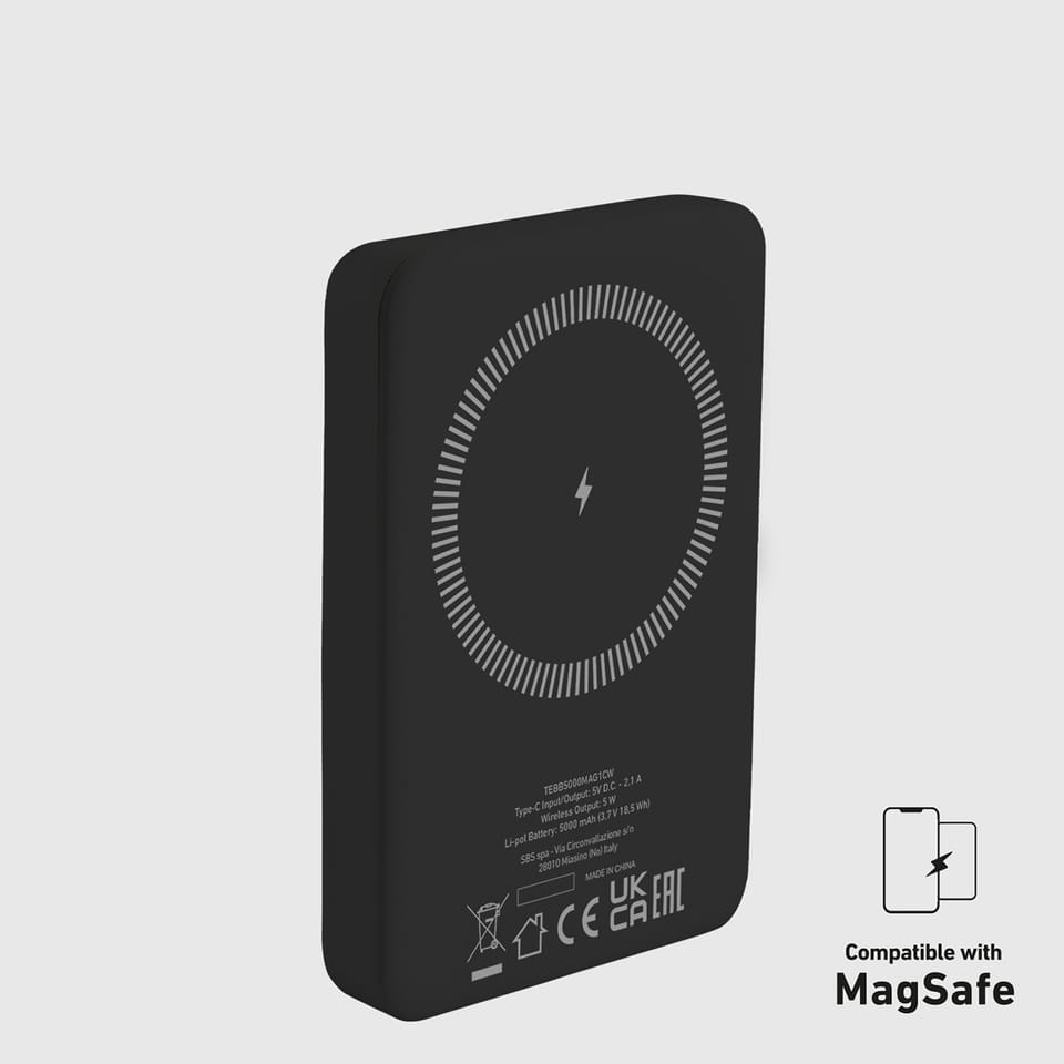 Kod produktu: 1027896Powerbank bezprzewodowy SBS TEBB5000MAG1CK to idealne rozwiązanie dla osób poszukujących wygodnego i wydajnego sposobu na ładowanie swoich urządzeń mobilnych. Dzięki pojemności 5000 mAh i kompatybilności z technologią MagSafe możesz szybko i bezpiecznie zasilać swoje urządzenia bez kabli. Urządzenie oferuje wszechstronność ładowania zarówno dla użytkowników iPhone'ów, jak i smartfonów z systemem Android wyposażonych w technologię ładowania bezprzewodowego. Z USB-C zapewnia szybkie ładowanie przewodowe, a wskaźniki LED pozwalają na bieżąco monitorować stan naładowania. Dzięki lekkiej konstrukcji i zgodności z wymogami lotniczymi, to niezastąpiony towarzysz każdej podróży. Wybierz SBS TEBB5000MAG1CK i ciesz się nowoczesną technologią ładowania w eleganckiej formie!Kompatybilność z MagSafe i AndroidPowerbank SBS TEBB5000MAG1CK idealnie sprawdza się z urządzeniami obsługującymi MagSafe, jak również z innymi smartfonami wyposażonymi w technologię ładowania bezprzewodowego. Niezależnie od posiadanego sprzętu, możesz cieszyć się wygodnym ładowaniem.Ładowanie bezprzewodowe na wyciągnięcie rękiMagnetyczne mocowanie do iPhone#8217;ów oraz proste użytkowanie dla urządzeń Android sprawiają, że ładowanie bezprzewodowe jest szybkie i wygodne. Wystarczy umieścić urządzenie na powerbanku, a ładowanie rozpocznie się automatycznie.Szybkie ładowanie przez USB-CDzięki portowi USB-C o mocy 10W możesz szybko naładować różnorodne urządzenia, w tym smartfony, słuchawki czy głośniki. To idealne rozwiązanie na sytuacje, gdy liczy się czas.Kompaktowy i łatwy w transporcieZ wagą zaledwie 140 g i kompaktowymi wymiarami, powerbank jest idealny w podróży. Możesz go bez problemu zabrać ze sobą, nawet w bagażu podręcznym.Bezpieczeństwo i wygoda użytkowaniaWbudowane wskaźniki LED informują o stanie naładowania, dzięki czemu masz pełną kontrolę nad pracą urządzenia. Ładowanie jest nie tylko szybkie, ale i bezpieczne.Najważniejsze cechy:
