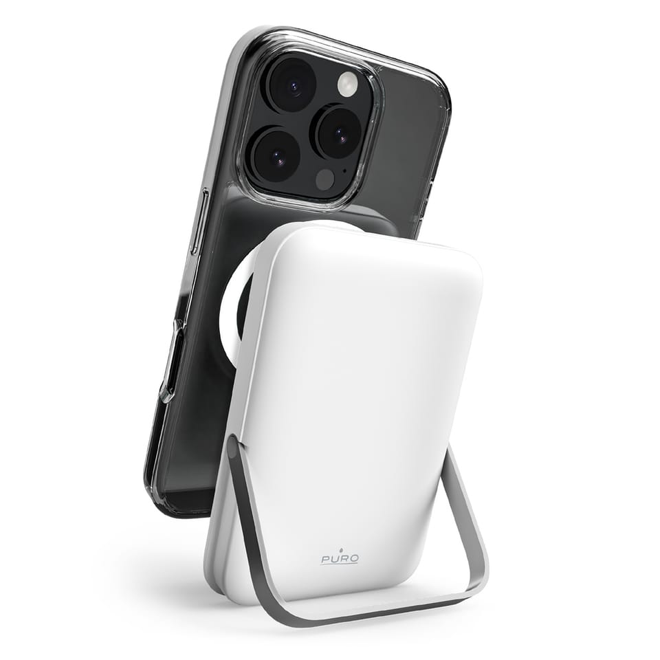 Kod produktu: 1029431Poznaj nowoczesny i funkcjonalny powerbank bezprzewodowy Puro 10000mAh, który łączy wydajność, styl i wygodę użytkowania. Dzięki wsparciu technologii MagSafe, urządzenie idealnie przylega do Twojego telefonu, zapewniając stabilne i szybkie ładowanie bez zbędnych kabli. Wbudowana aluminiowa podstawka umożliwia komfortowe korzystanie z telefonu podczas ładowania, a moc 15W gwarantuje efektywność i szybkość ładowania. Dodatkowo, możliwość ładowania równocześnie przez USB-C oraz bezprzewodowo czyni ten powerbank wszechstronnym rozwiązaniem dla każdego użytkownika. Wykonany z wytrzymałych, ognioodpornych materiałów, zapewnia bezpieczeństwo i niezawodność w każdej sytuacji.Najważniejsze cechy: