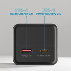 Złącza: 1 x USB typu C, 1 x USB typu ATyp baterii: Li-ionPojemność baterii: 20000 mAhWyjście USB-A: Quick Charge 3.0: 5 V / 3 A; 9 V / 2 A; 10 V / 2,25 A; 12 V / 1,67 A (maks. 22,5 W)Wejście/wyjście USB typu C: Power Delivery 3.0 • Wejście: 5 V / 3 A; 9 V / 3 A; 12 V / 3 A; 15 V / 3 A; 20 V / 3,25 A (maks. 65 W) • Wyjście: 5 V / 3 A; 9 V / 3 A; 10 V / 2,25 A; 12 V / 3 A; 15 V / 3 A; 20 V / 3,25 A (maks. 65 W)Dodatkowe informacje: • Wyświetlacz LCD z poziomem naładowania baterii, czasem ładowania i napięciem ładowania • Automatyczne wykrywanie połączenia • Zabezpieczenia przed przepięciem, przeciążeniem, przeładowaniem, głębokim rozładowaniemMateriał: Plastik + ABSKolor: CzarnyWaga: 365 gWymiary: 131 x 52 x 50 mmW zestawie: kabel USB-C (13 cm)