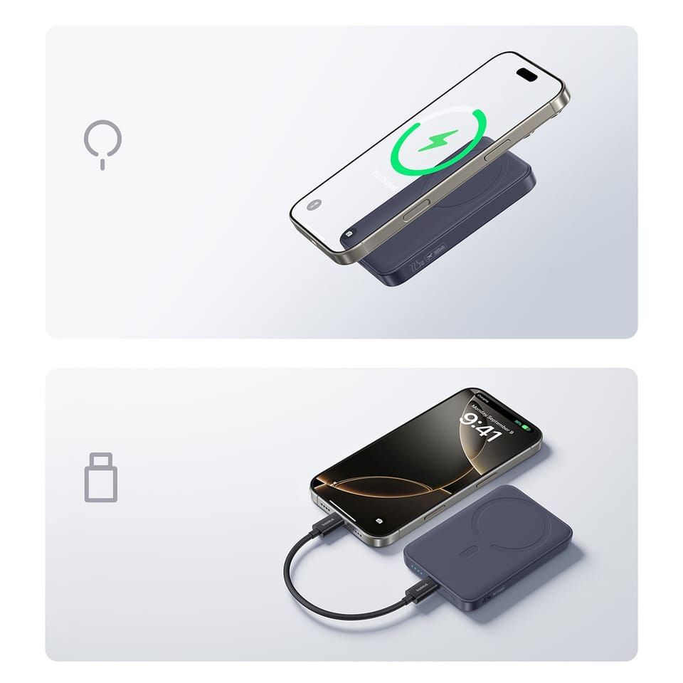 Kod produktu: 1033443Baseus EnerFill FM11 to ultrakompaktowy powerbank magnetyczny o pojemności 10000 mAh, który łączy szybkie ładowanie przewodowe 22,5 W z bezprzewodowym ładowaniem do 15 W. Smukła konstrukcja, mocne magnesy N52 oraz inteligentna kontrola temperatury zapewniają wygodne i bezpieczne użytkowanie na co dzień. W zestawie znajduje się czarny kabel Baseus Simple USB-C 20 V/3 A o długości 0,30 m.Cechy produktu: