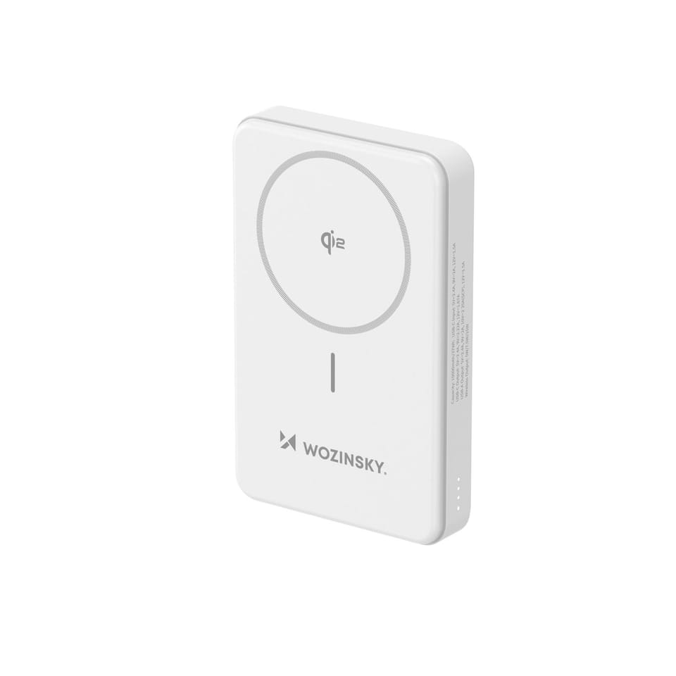 Kod produktu: 1027532Powerbank Wozinsky WLWP-10KA0Y3WS to doskonałe rozwiązanie dla każdego, kto ceni mobilność i szybkie ładowanie. Ten elegancki, biały powerbank o pojemności 10 000 mAh został wyposażony w technologię Qi2.0, zapewniającą bezprzewodowe ładowanie magnetyczne. Obsługuje szybkie ładowanie PD 20W oraz maksymalną moc 22,5W przez USB-A. Dzięki wbudowanej podstawce możesz wygodnie korzystać z telefonu podczas ładowania, a jego kompaktowa konstrukcja sprawia, że zmieści się w każdej kieszeni. Zabezpieczenia przed przeładowaniem i przegrzaniem gwarantują bezpieczne i efektywne ładowanie Twoich urządzeń.Bezprzewodowe ładowanie Qi2.0 z magnetycznym mocowaniemPowerbank Wozinsky obsługuje nowoczesne ładowanie indukcyjne Qi2.0, co oznacza, że możesz ładować telefon bez kabli - wystarczy przyłożyć urządzenie do powierzchni magnetycznej.Podstawka dla wygody użytkowaniaWbudowana podstawka pozwala ustawić smartfon w pionie lub poziomie, idealne do oglądania filmów czy prowadzenia wideorozmów.Szybkie ładowanie PD 20W i 22,5WObsługa Power Delivery 20W oraz USB-A 22,5W sprawia, że Twoje urządzenia naładują się szybciej niż kiedykolwiek.Kompaktowy i lekki designSmukła konstrukcja sprawia, że powerbank nie zasłania aparatu telefonu i łatwo mieści się w kieszeni.Bezpieczeństwo na najwyższym poziomieZaawansowane systemy zabezpieczają przed przeładowaniem, przegrzaniem, zwarciem i innymi zagrożeniami.Najważniejsze cechy: