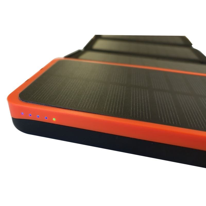 - pojemność Powerbanku to 20000mAh co daje możliwość trzykrotnego naładowania smartfona. Należy pamiętać, że przy idealnie słonecznej pogodzie i kącie padania promieni słonecznych panele solarne osiągają moc maksymalną 2A, zazwyczaj jest to jednak 1A, dlatego panele solarne są awaryjnym źródłem zasilania i nie powinien być traktowany jako główne źródło zasilania. W trakcie ładowania "słońcem" mruga zielona dioda na wyświetlaczu.