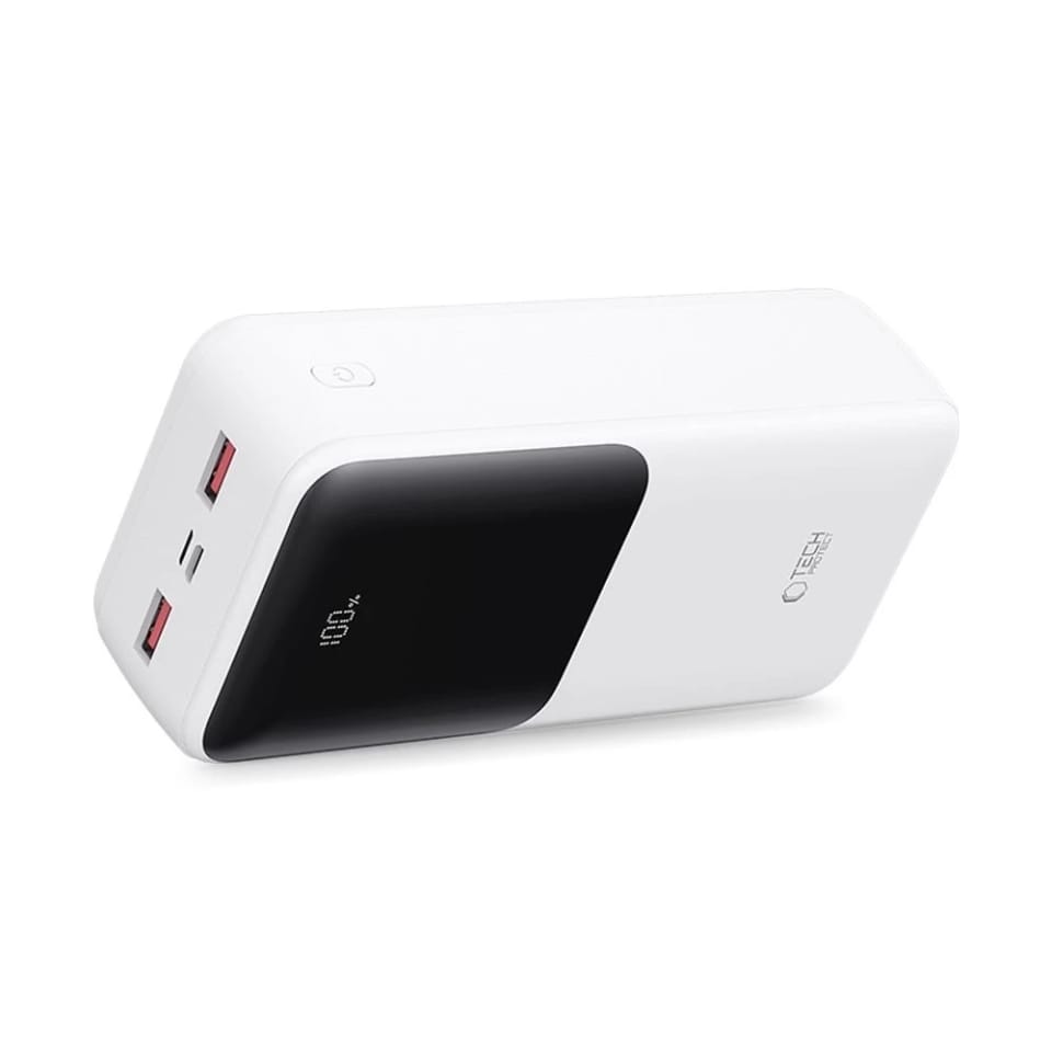 Tech-Protect PB03 to powerbank klasy premium o ogromnej pojemności 30000mAh, zaprojektowany z myślą o użytkownikach, którzy potrzebują wydajnego i niezawodnego źródła energii do ładowania wielu urządzeń jednocześnie.