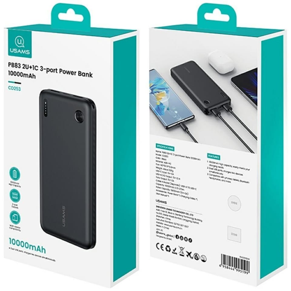 Powerbank USAMS PB83 2xUSB-A 1xUSB-C 10000mAh czarny
