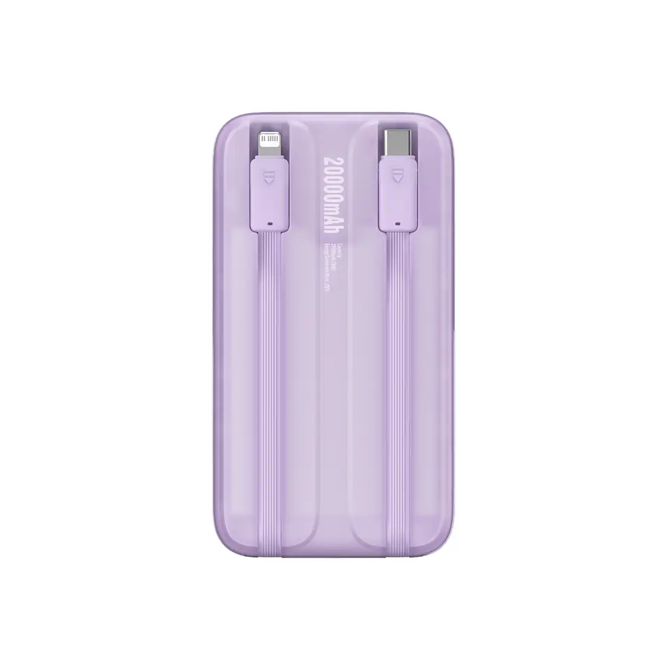 - - Zapomnij o zabieraniu ze sobą dodatkowych kabli. Powerbank Baseus Comet posiada wbudowane kable USB-C i Lightning o mocy do 20 W lub 22,5 W,