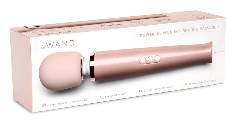 Luxury massage wand in a classic designMains-powered for non-stop powerMains plug with an extra long cable6 vibration modes in 10 intensitiesMovable, soft touch massage headThe classic toy celebrates its comeback!Mains-powered luxury massage wand Powerful Plug-In Vibrating Massager from Le Wand for intense massaging pleasure with non-stop power. 6 vibration modes in 10 intensities make individual massaging pleasure possible and can be controlled easily on the handle with the 3-button controls.The classic ergonomic wand design with long handle and movable massage head reaches all parts of the body and all pleasure spots easily to massage and stimulate them with vibrations. The velvety smooth soft touch texture feels great against the skin during stimulation.The Powerful Plug-In Vibrating Massager is powered by a mains plug with extra long cable. There are 4 different socket adapters included so the massage wand can be used all over the world (e.g. when travelling). There is also a high-quality storage bag included.Complete length 34 cm, massage head O 6.2 cm. Weight 585 g.ABS, silicone.