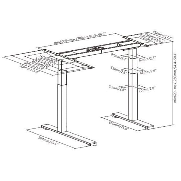Powerton ERGO EDGE Stelaż rama biurka narożnego z elektryczną regulacją wysokości 125 kg nośność, szary
