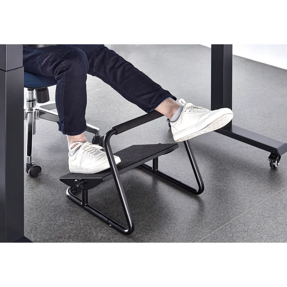 Dodatkowe podwyższenie podnóżka pozwala na rozprostowanie nóg. Płyta podstawy wyłożona został antypoślizgowym tworzywem. Podwójne zastosowanie podnóżka sprawia, że znajdzie on wiele zastosowań nie tylko w trakcie pracy przy komputerze ale również jako komfortowe wsparcie dla stóp w trakcie czytania książki w ulubionym fotelu lub da chwilę dodatkowego relaksu w trakcie oglądania ulubionego serialu.