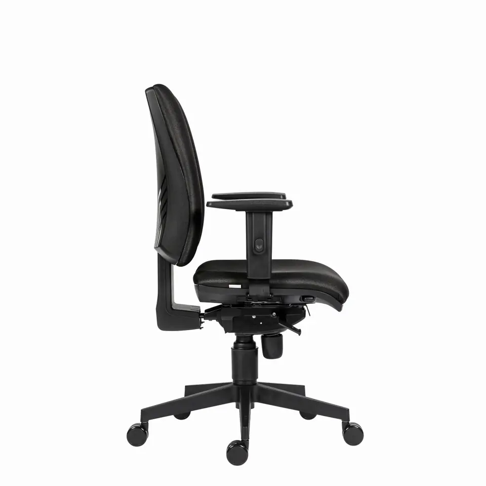 Tłok gazowy umożliwia regulację wysokości siedziska w zakresie 9 centymetrów, pozwalając na utrzymanie odpowiedniej pozycji stóp i kolan. Regulowane podłokietniki w płaszczyźnie góra dół pozwalają na dopasowanie ich wysokości do indywidualnych potrzeb, co znacznie poprawia komfort pracy.
