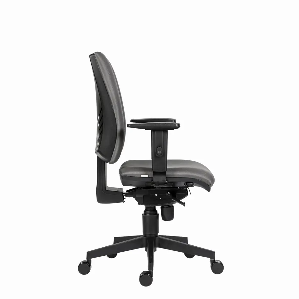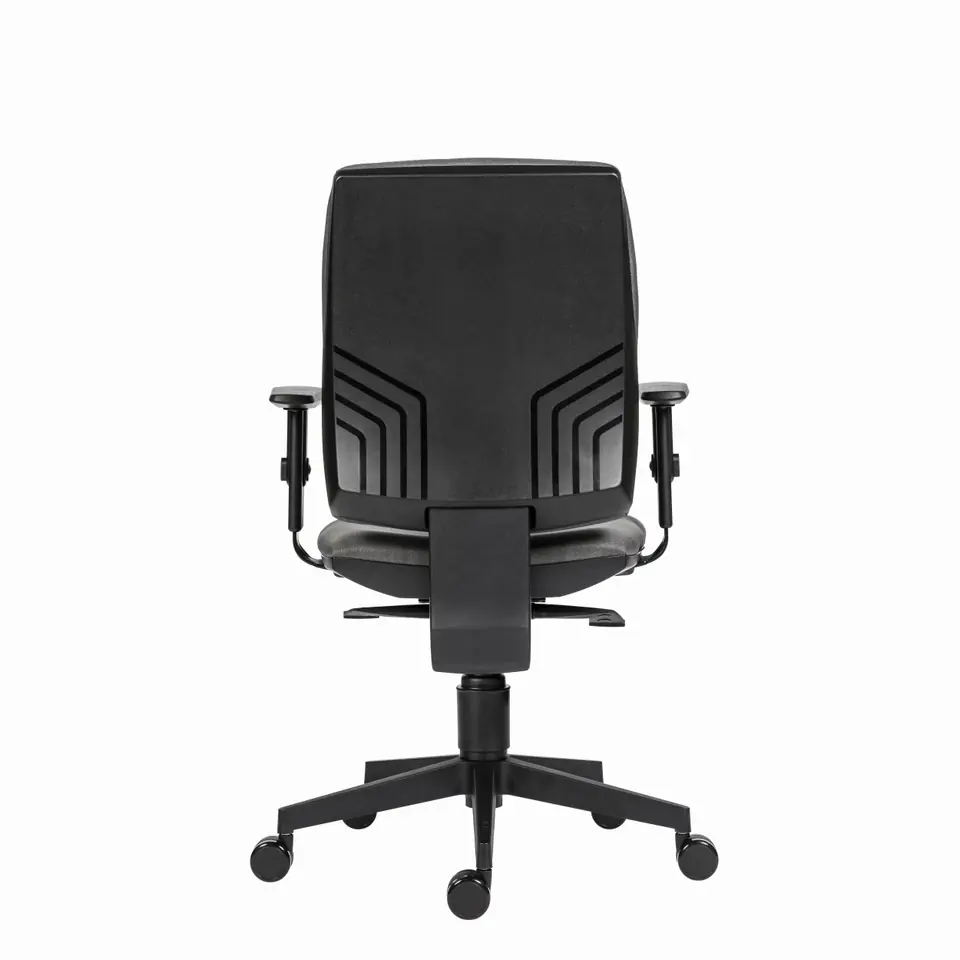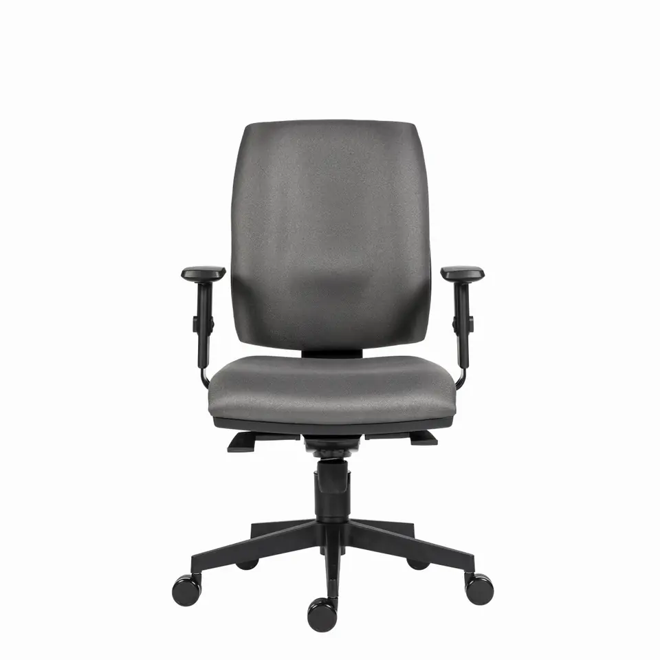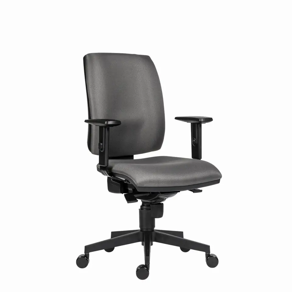 Tłok gazowy umożliwia regulację wysokości siedziska w zakresie 9 centymetrów, pozwalając na utrzymanie odpowiedniej pozycji stóp i kolan. Regulowane podłokietniki w płaszczyźnie góra dół pozwalają na dopasowanie ich wysokości do indywidualnych potrzeb, co znacznie poprawia komfort pracy.