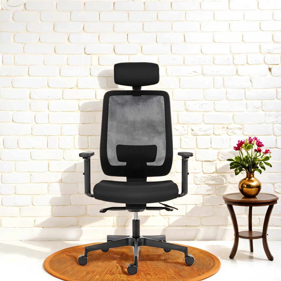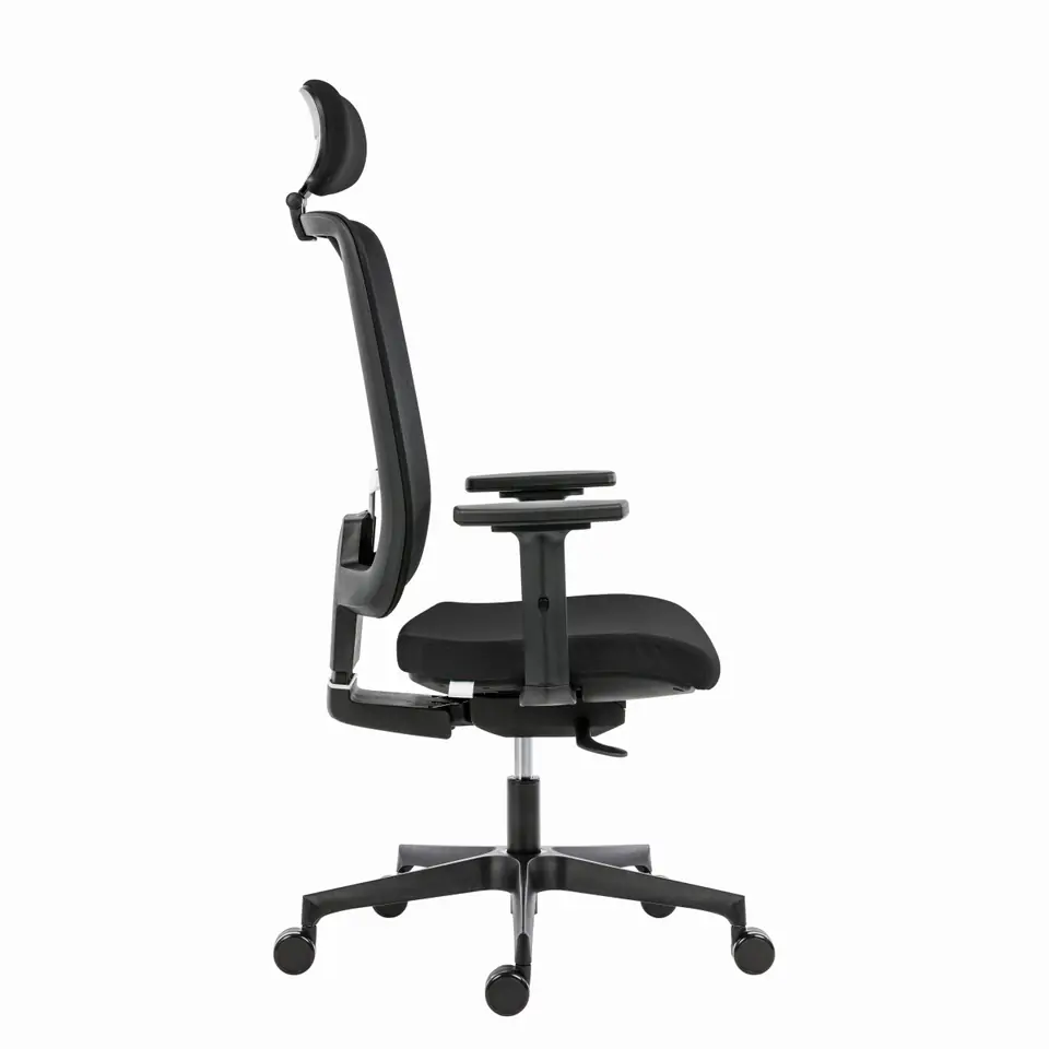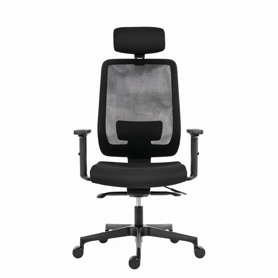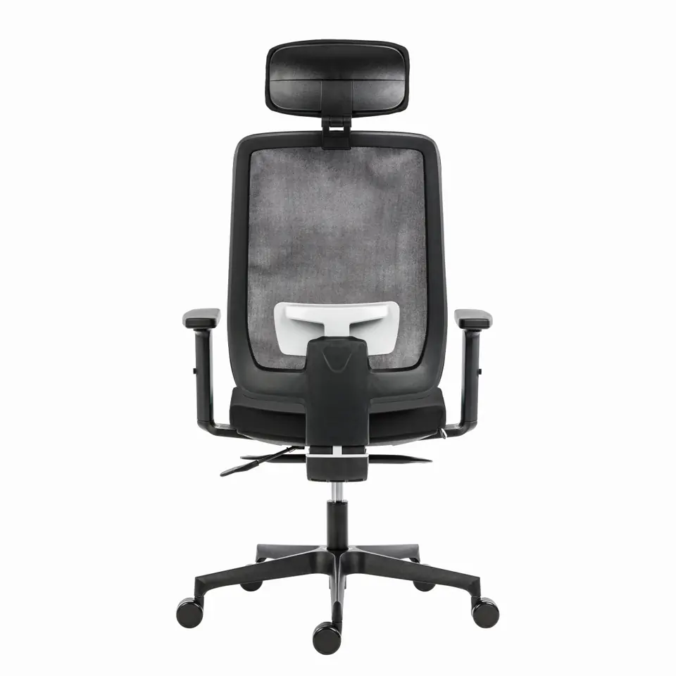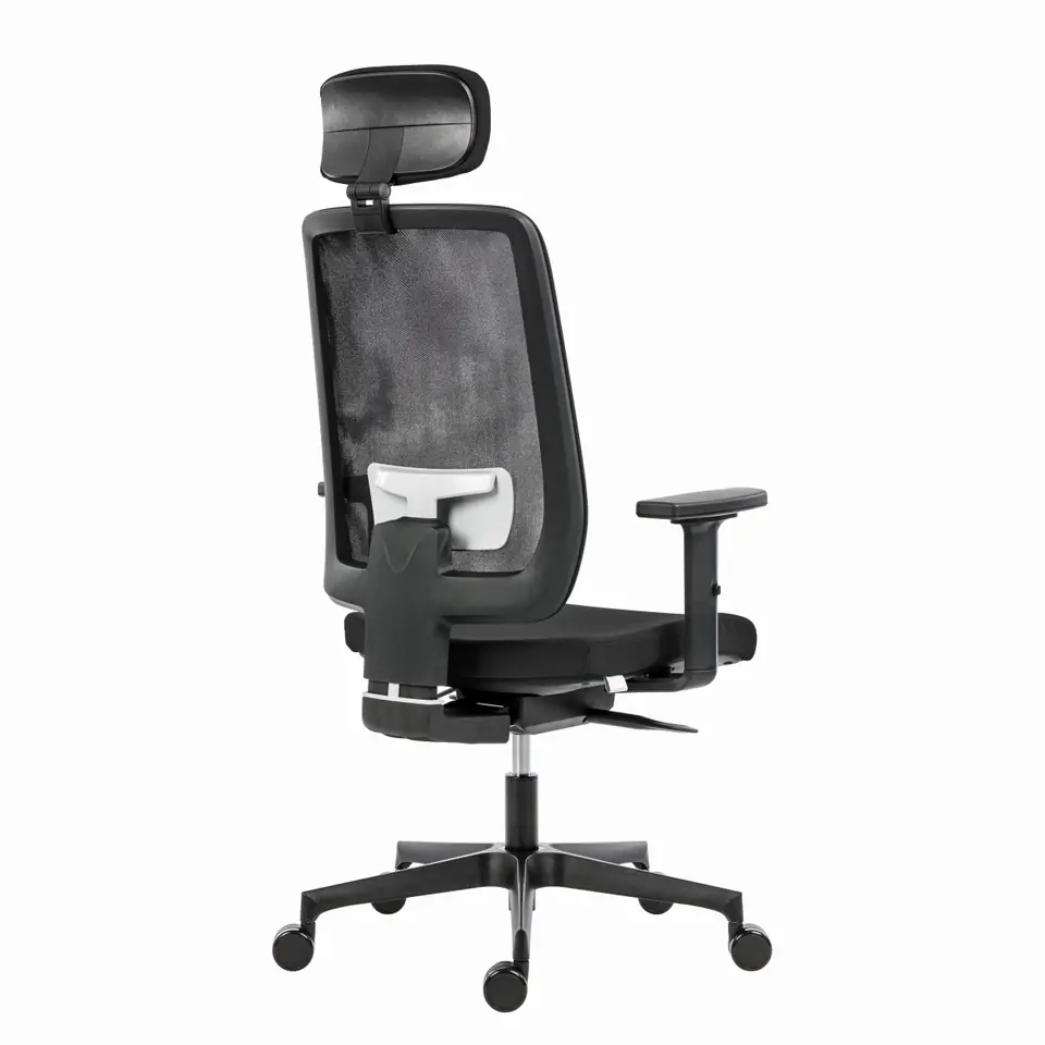 Fotel wykonany został z trwałych materiałów wysokiej jakości. Tapicerowane siedzisko i siatkowe oparcie zapewniają wygodę oraz doskonałą cyrkulację powietrza, co poprawia komfort pracy nawet w cieplejszych warunkach. Zintegrowane, regulowane podparcie lędźwiowe oraz zagłówek umożliwiają indywidualne dopasowanie do sylwetki użytkownika.