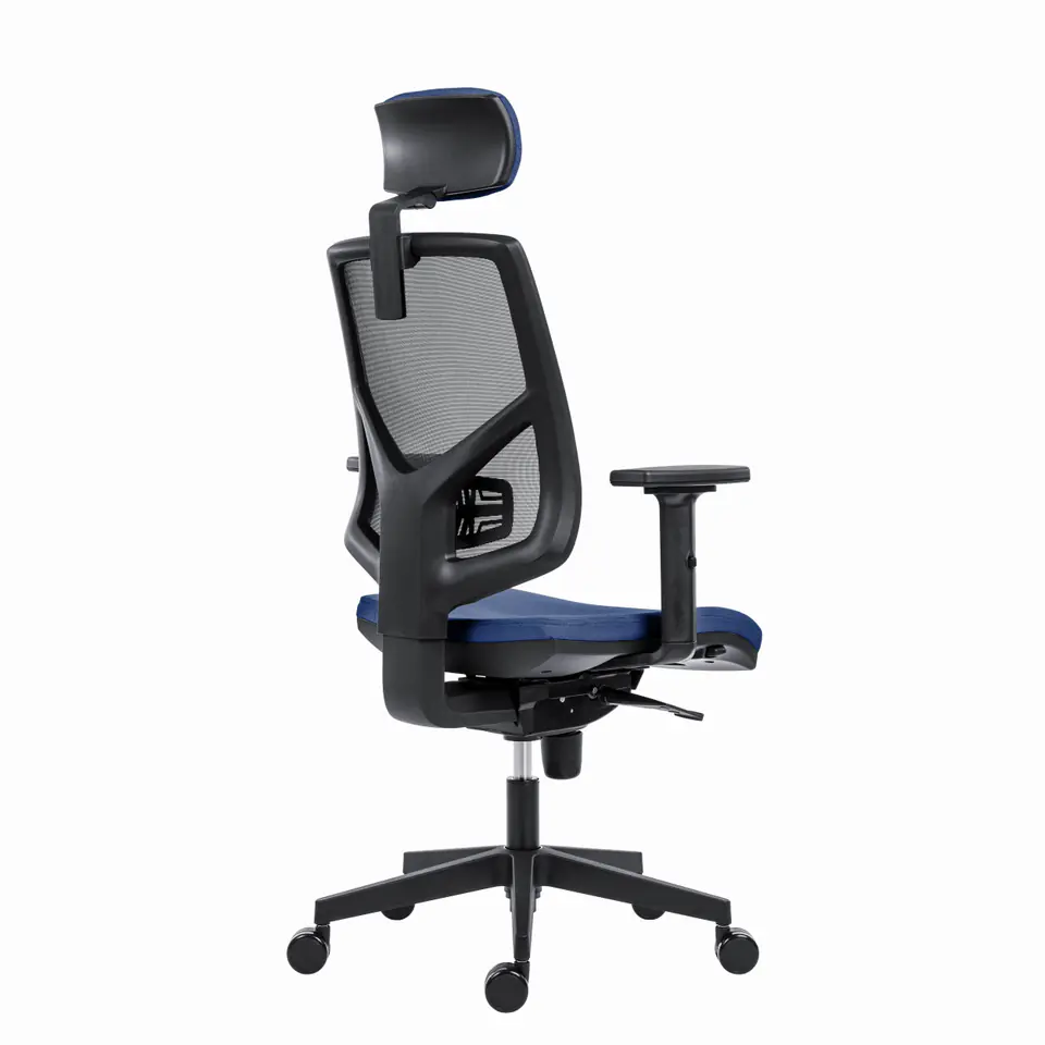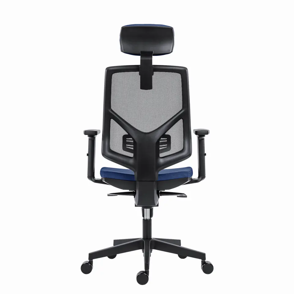 Fotel wyposażony jest w wygodne, wyściełane siedzisko oraz oparcie z siatki, które wspiera naturalną wentylację pleców, zapobiegając przegrzewaniu i zwiększając komfort użytkowania. Regulowane podparcie lędźwiowe oraz zagłówek pozwalają na idealne dopasowanie do sylwetki, co dodatkowo zwiększa ergonomię siedzenia.