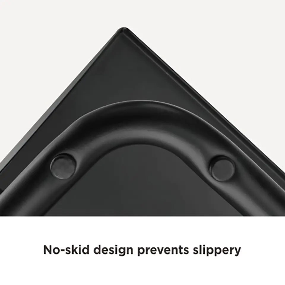 Solidna metalowa rama wykończona gumowym stopkami zapewnia stabilne ułożenie podnóżka i zapobiega jego ślizganiu się po gładkiej powierzchni.