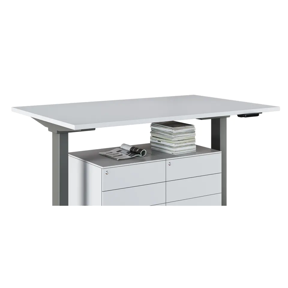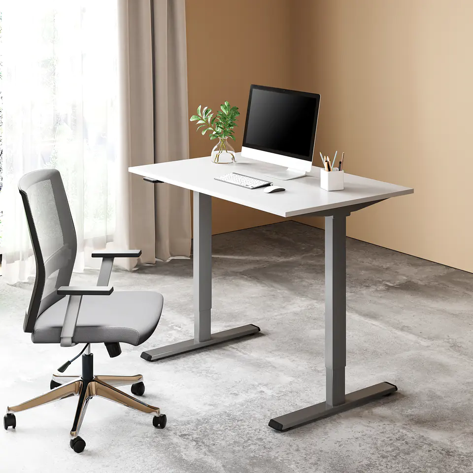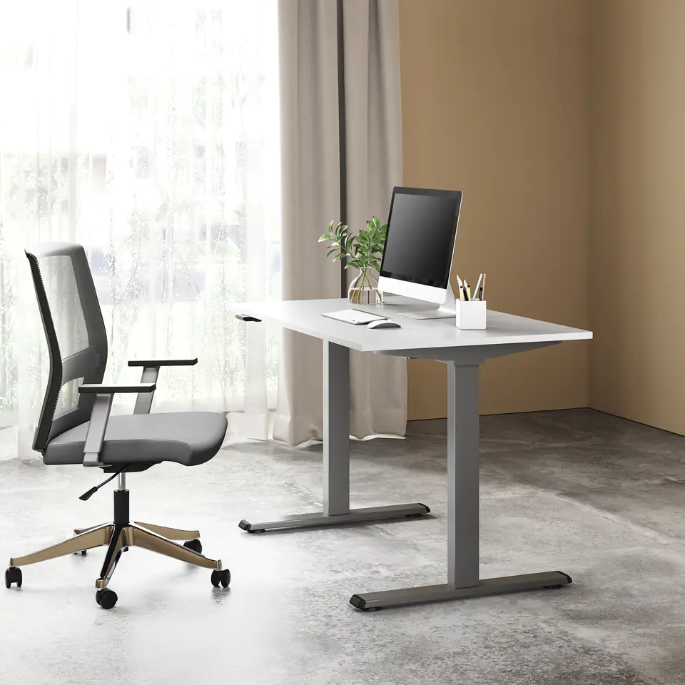 Praca przy komputerze przez wiele godzin dziennie może znacząco obciążać kręgosłup oraz układ krążenia. Elektrycznie regulowana rama biurka to nowoczesne, ergonomiczne rozwiązanie, które pozwala na łatwe i szybkie przełączanie pozycji pracy między siedzącą a stojącą. Dzięki temu zmniejszasz ryzyko bólu pleców, sztywności mięśni oraz poprawiasz ogólny komfort i wydajność podczas pracy.