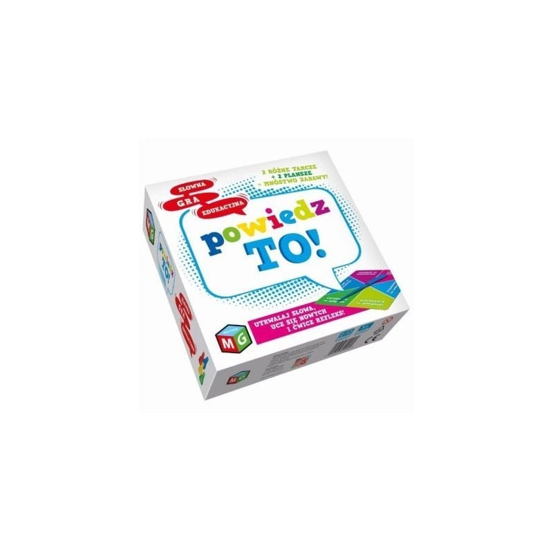 Słowo na "L"! Czasownik na samogłoskę! Czy potrafisz je wymienić w ciągu sekundy lub dwóch? Czas ucieka, więc musisz się pospieszyć. "Powiedz TO!" jest językową grą edukacyjną. Grając w nią, dzieci utrwalają i powiększają swoją wiedzę związaną ze słowami zaczynającymi się na konkretne litery.Trenują też znajomość części mowy. Rozgrywka dostarcza masę zabawy, pomaga w treningu refleksu i koncentracji. Zawartość pudełka: dwustronna plansza, 12 plastikowych pionków, pionek chmurka "Powiedz TO!", podstawka do pionka, bączek, 2 tarcze, 2 wskazówki, instrukcja. Wymiary pudełka w cm: 6/25,5/24,5