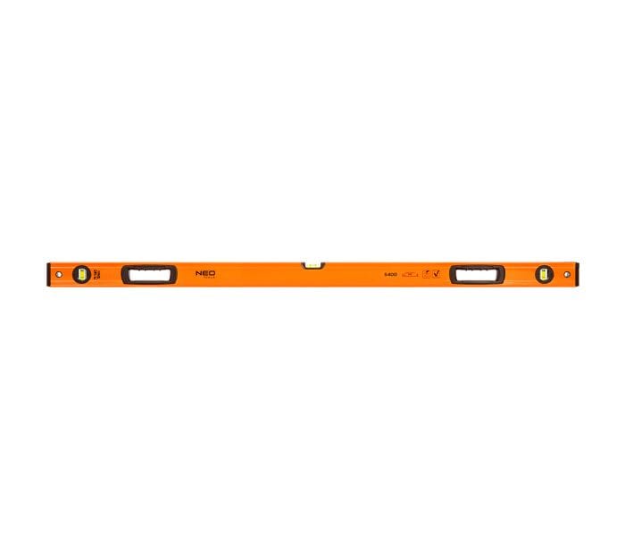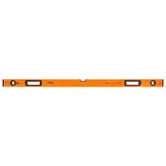 Poziomnica aluminiowa 120 cm, 3 libelle z systemem łatwego odczytu, 2 uchwyty, 2 nasadki antywstrząsowe, grubość profilu 1.2 mm, dokładność 0.029°=0.5mm/m