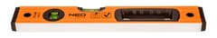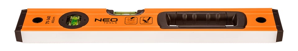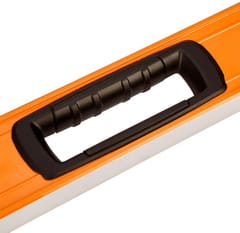 Poziomnica aluminiowa 40 cm, 3 libelle z systemem łatwego odczytu, uchwyt, 2 nasadki antywstrząsowe, grubość profilu 1.2 mm, dokładność 0.029°=0.5mm/m