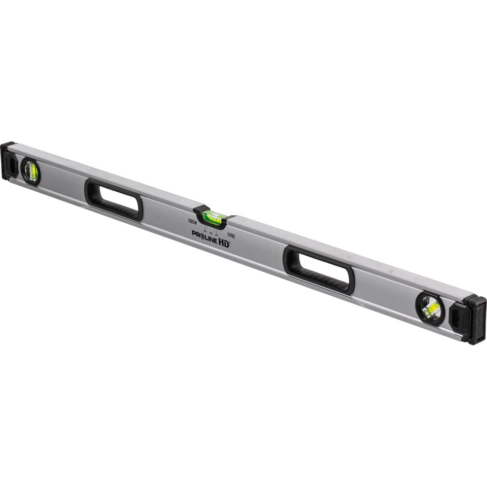 - Poziomnica z uchwytami z serii PROLINE HD wykonana z prostokątnego, grubego profilu aluminiowego tłoczonego