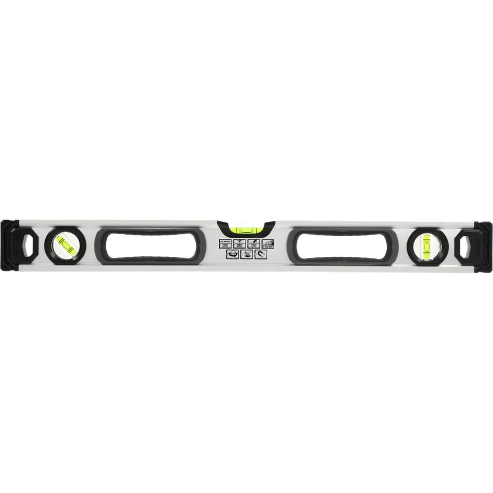 - Poziomnica z uchwytami z serii PROLINE HD wykonana z prostokątnego, grubego profilu aluminiowego tłoczonego