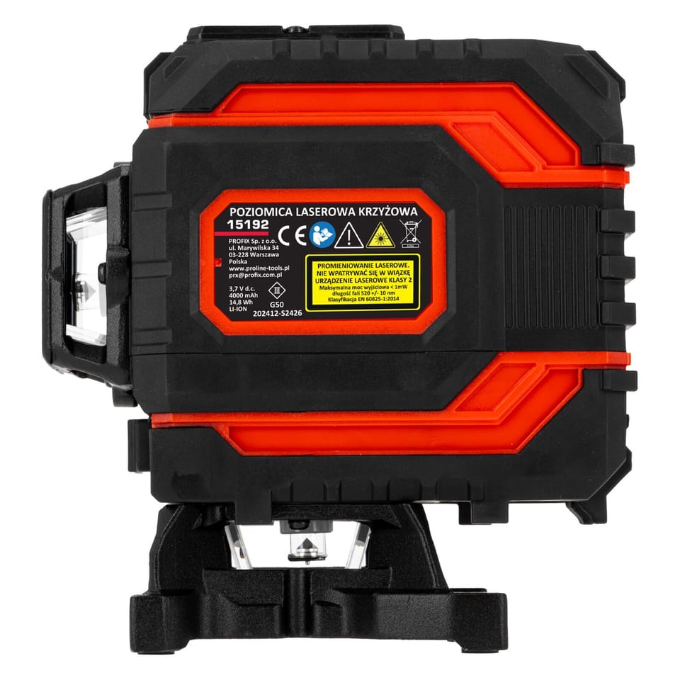 - W komplecie okulary zwiększające widoczność promienia lasera, ładowarka do akumulatorów, uchwyt z magnesem, podstawka obrotowa, pilot , podstawka umożliwiająca podnoszenie lasera w pionie, dodatkowo w modelu 4D uchwyt umożliwiający zawieszenie lasera od góry