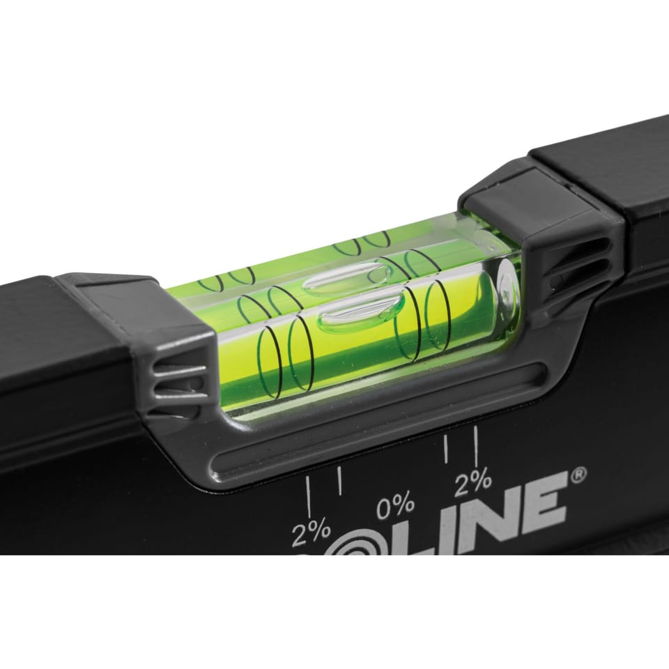 - Libelka poziomu z dodatkowymi pierścieniami umożliwiającymi wyznaczanie 2% spadku