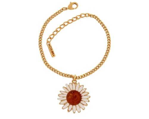 Pozłacana bransoletka z białym kwiatem i bursztynem z kolekcji Amber B24/TYN/09/1AU