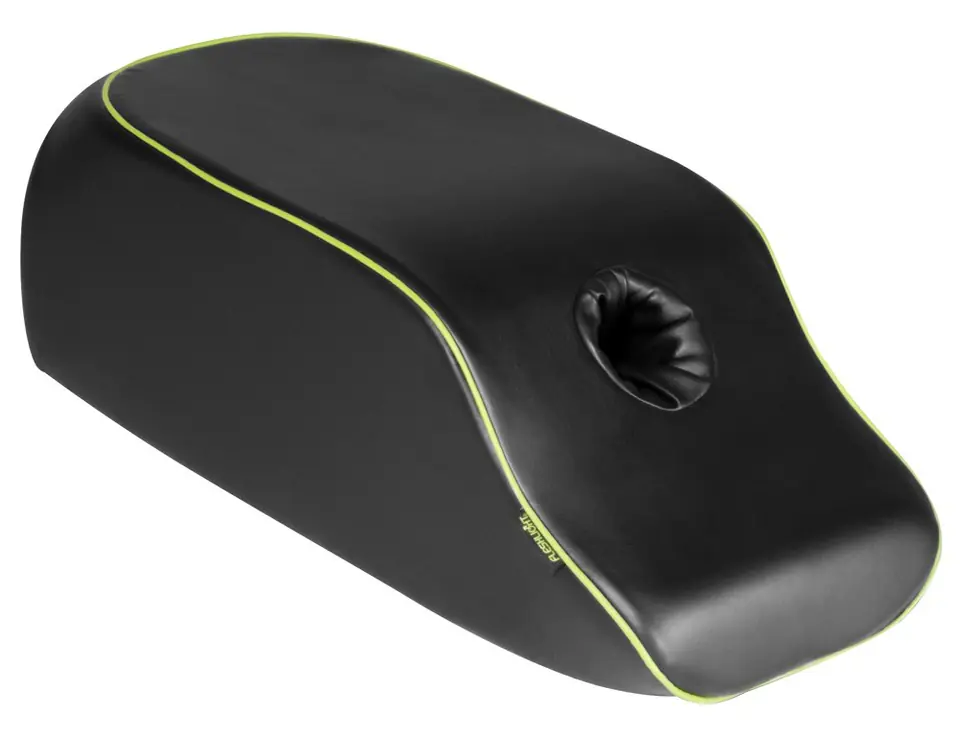 Poduszka z miejscem na masturbator Fleshlight (brak w zestawie). Masturbator można włożyć do otworu w poduszce, aby znalazł się w idealnej pozycji – umożliwia to intensywną przyjemność pchania w pozycji misjonarskiej. Może być również używana jako poduszka do seksu podczas seksu z partnerem – ergonomiczny, wygięty kształt umożliwia różne pozycje dla bardzo głębokiej stymulacji. Poduszka z imitacji skóry jest łatwa do czyszczenia.