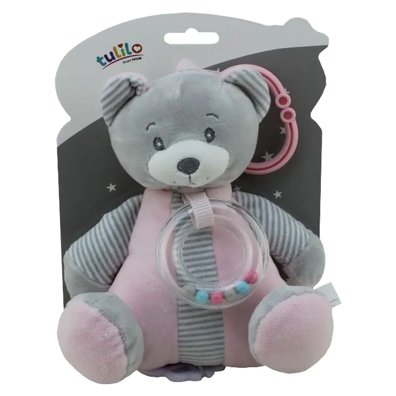 Przytulanka z pozytywką Wykonana jest z miłych, delikatnych materiałów i jest bezpieczna dla dzieci od pierwszych dni życia. Zabawka ma uspokajający wpływ na małe dzieci i doskonale się sprawdza jako pomoc przy usypianiu. - bawi - uczy - rozwija koordynacje wzrokowo ruchową Rozmiar: 18 cm Wiek: 0+