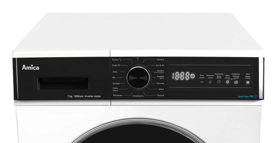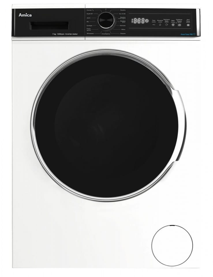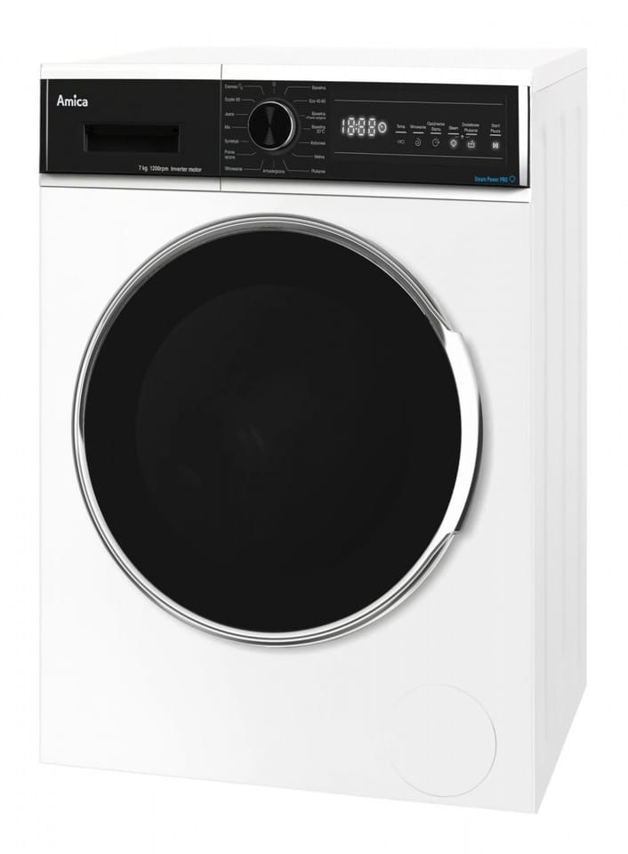 SteamPower ProPara generowana na początku cyklu prania gwarantuje perfekcyjnie czyste, w pełni zdezynfekowane ubrania. Wytwarzana w trakcie prania para zabija wirusy i bakterie, dzięki czemu odzież, pościele i inne tkaniny są sterylnie czyste. Para dodana do programu Łatwe prasowanie jest generowana także przed ostatnim wirowaniem i wnikając we włókna tkaniny, rozluźnia je. Tym samym redukuje zagniecenia, a prasowanie staje się łatwiejsze.LogicDrive 3.0Innowacyjny bezszczotkowy silnik LogicDrive 3.0. dzięki zastosowaniu najnowszej technologii, pozwala na osiągnięcie bardzo dobrej efektywności prania nawet przy krókich programach. Dodatkowo silnik gwarantuje osiagnięcie najwyższej klasy energetycznej przyczyniając się tym samym do znacznego obniżenia zużycia energii, zapewnia dłuższą żywotność urządzenia i cichą pracę.Add+Pranie w toku, a Ty zapomniałeś wrzucić do pralki jakieś ubrania? A może coś zawieruszyło się w pokoju dzieci? Dzięki opcji Add+ nie ma potrzeby ponownego uruchomienia pralki dla zapomnianych sztuk odzieży, możesz je dołożyć w każdej chwili, niezależnie od ich rozmiaru. Ikona na wyświetlaczu pralki poinformuje Cię, kiedy możesz zatrzymać program przyciskiem "Pauza" , otworzyć drzwiczki i dołożyć zapomniane ubranie. Czysty komfort i wygoda! Klasa energetyczna BZależy ci na dużo niższych rachunkach? Zdecyduj się na sprzęt o bardzo wysokiej klasie energetycznej. Twoje rachunki będą niższe, bo będziesz oszczędzać przy każdym kolejnym cyklu prania. Pralki w klasie energetycznej B zużywają aż o 42% mniej energii niż pralki w klasie F, co oznacza oszczędność enerii na poziomie 104 cykli rocznie. Wpływaj na swoje oszczędności! Program AntyalergicznyAlergie to coraz częstszy problem zarówno u dzieci jak i dorosłych. Specjalny algorytm programu ze zwiększoną intensywnością prania, czterema płukaniami w podgrzanej wodzie usuwa praktycznie wszystkie alergeny i drobnoustroje z pranej odzieży. Wszystko w trosce o zdrowie i delikatną skórę Twoich najbliższych. Wyświetlacz LEDChcesz, aby wstawianie prania zajmowało Ci jak najmniej czasu? Na czytelnym, dużym wyświetlaczu łatwo odnajdziesz i ustawisz wszystkie funkcje i dobierzesz odpowiednie parametry. Dzięki temu codzienne pranie stanie się maksymalnie intuicyjne. Sterowanie sensoroweDotykowe sensory gwarantują szybki dostęp do programów i funkcji, większą ergonomię użytkowania i wygodę czyszczenia.ChildLockFunkcja wyjątkowo przydatna dla rodzin z dziećmi, pozwalająca zablokować przyciski funkcyjne. Dzięki temu unikniesz przypadkowej zmiany ustawień lub wyłączenia pralki.Opóźnienie startuFunkcja umożliwiająca opóźnienie rozpoczęcia ustawionego programu prania do 24 h.Program Eco 40-60°CProgram automatycznie dobiera czas, temperaturę oraz zużycie wody do załadunku pralki. Nadaje się dośrednio zabrudzonych tkanin bawełnianych. Program BawełnaProgram do prania średnio lub mocno zabrudzonych bawełnianych koszulek, ręczników i pościeli.Program Bawełna + Pranie wstępneKorzystaj z efektywnego programu bawełna i programu wstępnego, by usunąć nawet najbardziej uporczywe plamy z bawełnianych i lnianych tkanin.Program Bawełna 20°CProgram do odświeżania odzieży bawełnianej.Program WełnaProgram Wełna skutecznie pierze i chroni wełniane włókna przed filcowaniem i odkształceniem. Dzięki niemu Twoje ulubione swetry pozostaną idealnie czyste, miękkie i puszyste.Program SyntetykiSpecjalny program do prania odzieży z dodatkiem włókien syntetycznych zapewni skuteczność prania i ochronę delikatnym tkaninom.Program MixProgram ciągły (pranie z suszeniem), który pozwala Ci na elastyczne ustawianie parametrów prania, dopasowanych do rodzaju tkanin i poziomu zabrudzeń.Program WirowanieDzięki wirowaniu pozbywamy się nadmiaru wody z ubrań przez co szybciej schną i nie ma ryzyka zalania podłogi.Program PłukanieWypłukiwanie resztek detergentu z ubrań oraz odwirowanie z nadmiaru wody.Program JeansProgram przeznaczony do prania odzieży jeansowej.Program Express 15'Lekko zabrudzone lub dłużej nienoszone ubrania odzyskają świeżość w ciągu zaledwie 15 minut. Program zapewnia oszczędność czasu i energii.Program Szybki 60Brakuje Ci czasu na pranie? Program Szybki 60 pozwoli Ci w krótkim czasie uporać się z niewielką ilością średnio zabrudzonych rzeczy. Bez problemu dobierzesz też właściwą temperaturę i prędkość wirowania.Program Pranie ręczneSzczególna ochrona i skuteczne pranie delikatnych tkanin. Program który doskonale zastąpi pranie ręczne.Wymienne łożyskaDzięki wymiennym łożyskom, ich awaria nie powoduje konieczności wymiany pralki. Łożyska można w prosty sposób wymienić samodzielnie lub przy pomocy serwisanta.Wymienna grzałkaDzięki wymiennym grzałkom ich awaria nie powoduje konieczności wymiany pralki. Grzałki można w prosty sposób wymienić samodzielnie lub przy pomocy serwisanta.Regulacja wirowaniaFunkcja pozwala na regulację wirowania lub jego całkowite wyłączenie w trosce o delikatne tkaniny.Regulacja temperaturyRóżnorodne tkaniny wymagają różnych warunków prania. W pralkach Amica masz możliwość dostosowania temperatury do typu włókien i rodzaju zabrudzeń.ThermoGlassDrzwi pralki z poliwęglanową osłoną izolują ciepło i chronią przed poparzeniem. Możesz mieć pewność, że Twoje dziecko może bezpiecznie dotykać szyby bez żadnego ryzyka oparzenia.AutoSensorNie chcesz wybierać między oszczędnością wody a jakością prania? Czujnik poziomu wody automatycznie dobierze wodę do programu oraz rodzaju i ilości odzieży.