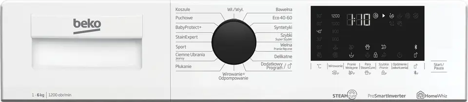 | Programy prania: | Bluzka/koszula, Szybki, Sport, Puchowe ubranie/ kołdra, Wirowanie, StainExpert, Syntetyk, Delikatne, Pobierz program, Bawełna, Opieka nad dzieckiem, Eco 40-60, Płukanie, Dżins / denim, Ręka/wełna |