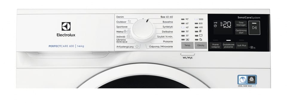 Pralka ładowana od frontu PerfectCare 600 z systemem SensiCare, programem Antyalergicznym, opcją SoftPlus i funkcją Eco TimeManager, pojemność 6 kg.