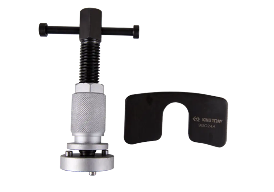 Narzędzie do cofania tłoczków hamulcowych. Pozwala na szybki demontaż tłoczków hamulcowych z układu bez uszkodzenia pierścienia uszczelniającego / tłoka.Zaletą jest duża wytrzymałość, grube elementy, śruba i dobrze wyżłobiony gwint. Znajduje zastosowanie w większości samochodów europejskich i japońskich. Praska z belką do zapierania praski o siodło zacisku. Zawiera dwustronny adapter z różnymi odstępami bolców 33 oraz 22 mm (wymiar mierzony jest od środka jednego do środka drugiego bolca) Karta produktu - 9BC24A