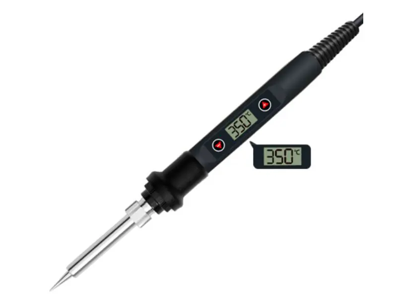 Bardzo poręczna lutownica kolbowa o mocy 60W przeznaczona do lutowania drobnych elementów elektronicznych i drobnych poprawek modelarskich. Temperaturę można regulować za pomocą przycisków w zakresie od 180°C aż do 500°C. Wyposażona w wyświetlacz LCD, na którym wyświetlane są zakresy temperatury stopniach Celsjusza. Wysokiej jakości grzałka sprawia, że osiągnięcie temperatury 350°C zajmie dosłownie kilka sekund. Kompaktowa obudowa lutownicy odporna jest na wysokie temperatury.