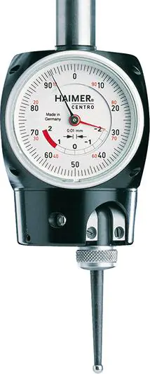Wykonanie: trzpień mocujący o średnicy 16 mm. Dokładność centrowania 0,003 mm i dokładność pomiaru 0,01 mm (tylko z oryginalnymi końcówkami pomiarowymi Haimer). Duży zegar pomiarowy ułatwiający odczyt.