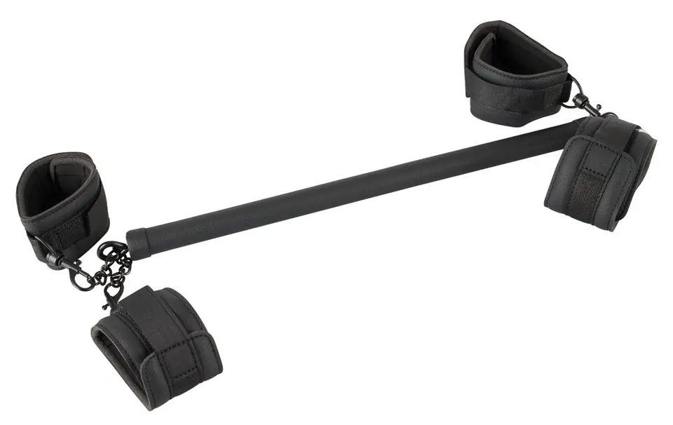 Solidny drążek z kajdankami na ręce i nogi, które można przymocować z obu stron. Dołączone kajdanki z imitacji skóry są miękko wyściełane i można je regulować za pomocą rzepów. Kajdanki można przymocować do drążka za pomocą karabińczyków. Krótki metalowy łańcuch może być używany do łączenia ze sobą kajdanek, dzięki czemu można ich również używać samodzielnie.