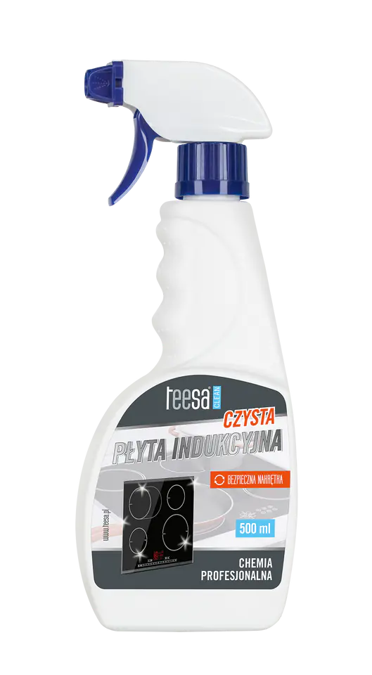 Środek do czyszczenia Teesa szybko rozmiękcza i skutecznie usuwa przypalony tłuszcz oraz inne zabrudzenia, pozostawiając czystą i lśniącą powierzchnię płyt indukcyjnych bez zacieków i smug. Wystarczy spryskać niewielką ilością preparatu oraz przetrzeć, by Twoja płyta nabrała blasku i świeżości.