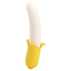 Silikonowy wibrator wielofunkcyjny Banana Geek od Pretty Love to zdrowe źródło orgazmów i dobrej zabawy! Zapewniający potężną przyjemność łechtaczce i pochwie, z siedmioma satysfakcjonującymi trybami wibracji i 3 trybami pchnięć, ten uroczy wibrator zapewnia wszystko, czego potrzebujesz. Z odrobiną lubrykantu na bazie wody, szeroki, zakrzywiony korpus Banana Geek wspaniale porusza się w Twoim kobiecym wnętrzu, podczas gdy szypułka skupia swoje silne wibracje, aby zintensyfikować stymulację, bezpośrednio w Twoim słodkim miejscu. Wykonany z jedwabistego silikonu zapewnia rewelacyjny poślizg, jest również bardzo łatwy do utrzymania w czystości i można go ładować przez USB.