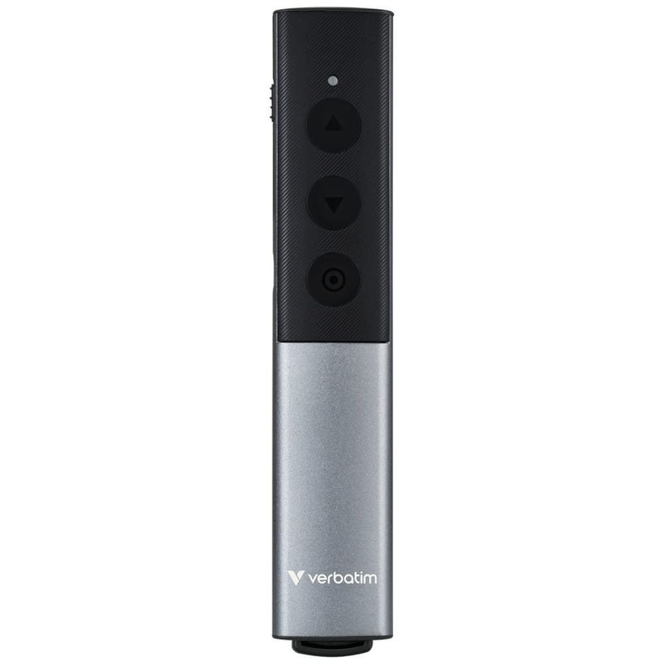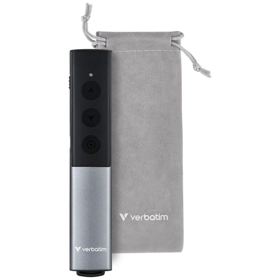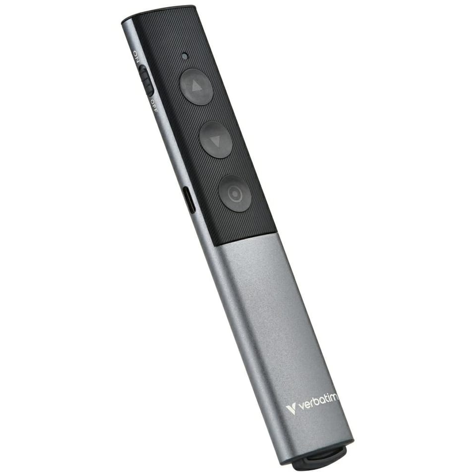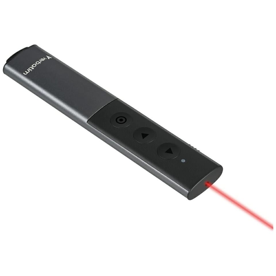 Dane Techniczne Marka Verbatim Urządzenie Bezprzewodowy prezenter z laserem Model Agenda Interfejs USB 2.0 Złącza odbiornika USB-A i USB-C Częstotliwość RF 2,4 GHz Wskaźnik laserowy Czerwony laser klasy I, długość fali 650 nm Zasięg lasera Do 100 m Moc wyjściowa lasera < 0,4 mW Akumulator Li-Polymer 250 mAh (3,7 V / 0,925 Wh) Ładowanie Wejście USB-C 5 V ⎓ 1 A Zasilanie Wbudowany akumulator ładowany przez port USB-C Materiał obudowy Stop aluminium Kompatybilność Windows, macOS, Android Kolor Szary Wymiary 144 × 28 × 11 mm